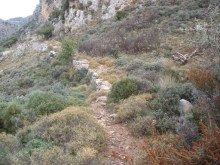 Turn right on the steps; continue the path and you will see the fence. After passing through please close it. The RUIN you will meet 15 minutes later- after you pass through the chestnut forest-is the sign that you are in Kato Milia.