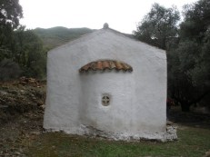 Just after you turn on your left. Forward on that direction you see the old Chapel of St. George on your left. If you pass the Old House in Kato Milia, walking on the right direction, following the earthen track to the upper side, you find a fence. Stop and look at the left and you see the path which takes you from the old path (which is missed a little bit), but continue straight forward and between the rock and you’ll se on your left Kastellos.