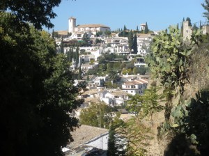 Thoughts of Spain often conjure the images of the Alhambra Place in Grenada. It is known as the Red Palace and was declared an UNESCO heritage site in 1984 and is considered to be one of the most beautiful palace/gardens in the world. We can attest that this is true. It has a great history beginning in the 13th century with the rule of the Nasrid dynasty. The Arabic design is still so very visual today. It wasn’t until the 15th and 16th century that the Catholic monarchs-Isabella and Ferdinand conducted extensive repairs and made the alterations that are still present today and give it some of it’s Spainish flare. It is breath taking and it is easy for one to meander the grounds and get lost in time, Our friend Luis suggested that we take the walk the locals take called the Cuesta de los Chinos. This is a trail that takes you around the periphery of the Palace and gardens and allows you to see a bit more of the history of Grenada.