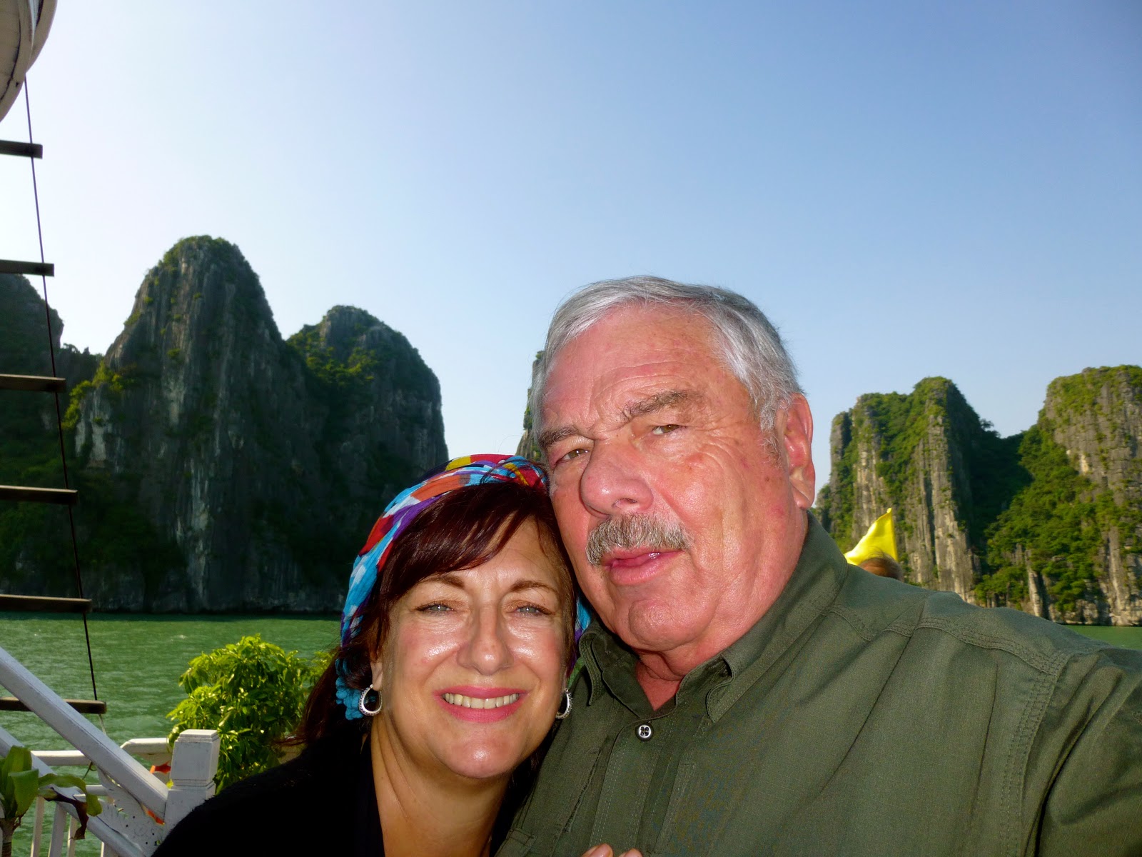 It is beautiful here. We are finding we need the quite and easy days of being on the emerald waters in the Gulf of Tonkin. We are staying on a junk which is an ancient Chinese style sailing ship. They range in a variety of shapes and sizes and are really quite nice. Ours is beautiful and only carries twenty passengers and the crew. It sails amidst the karst and grottos and we are in awe of the beauty here.